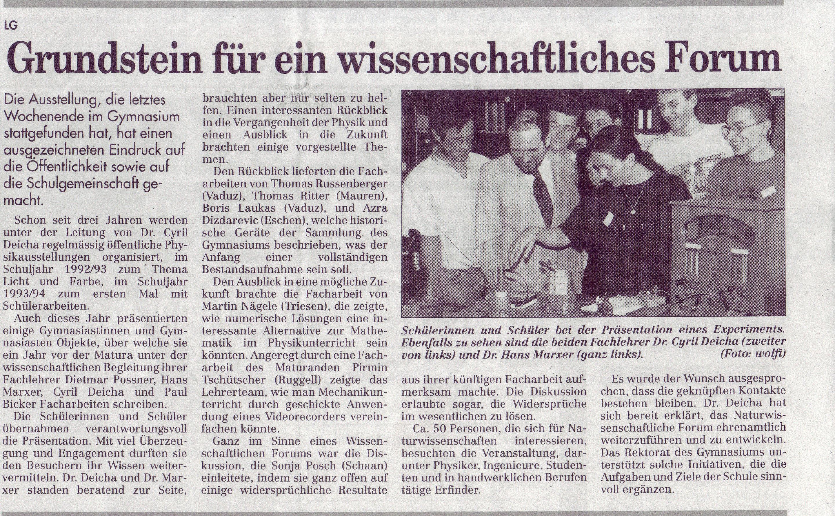 Der Verein Naturwissenschaftliches Forum besteht schon seit Jahrzehnten, Hier unsere Chronik: