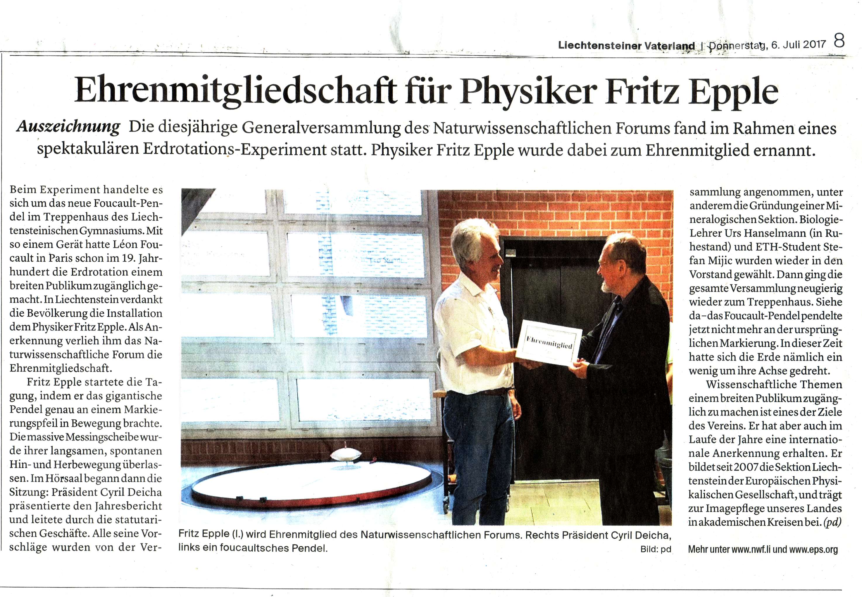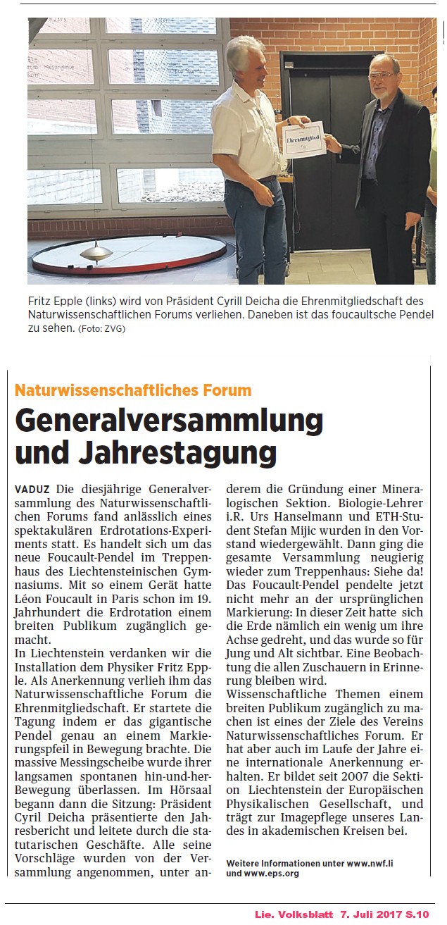 Foucault Pendel (Volksblatt) (Vaterland)