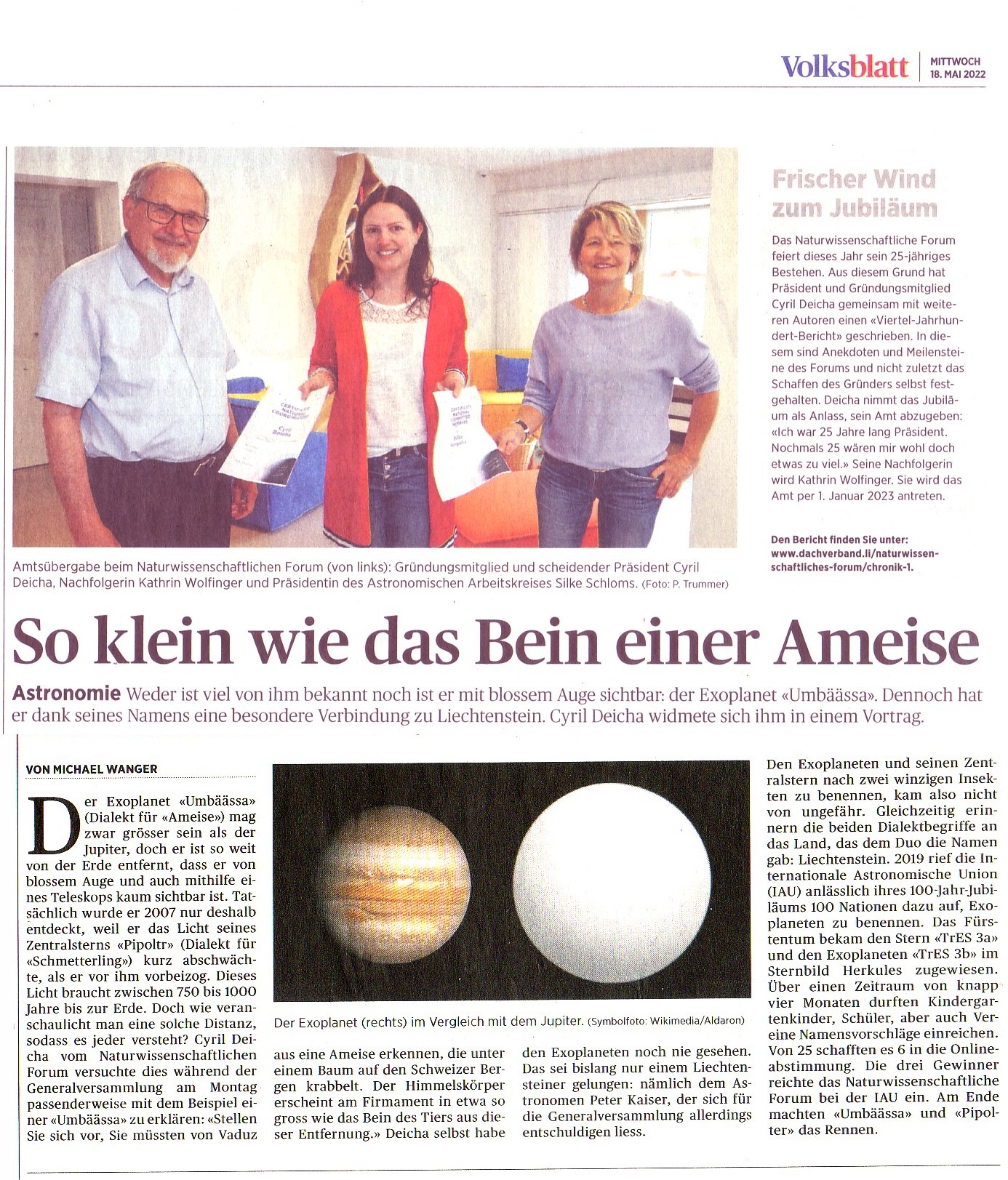 Cyril Deicha präsentiert den Viertel-Jahrhundert-Bericht (Volksblatt 18 Mai 2022)