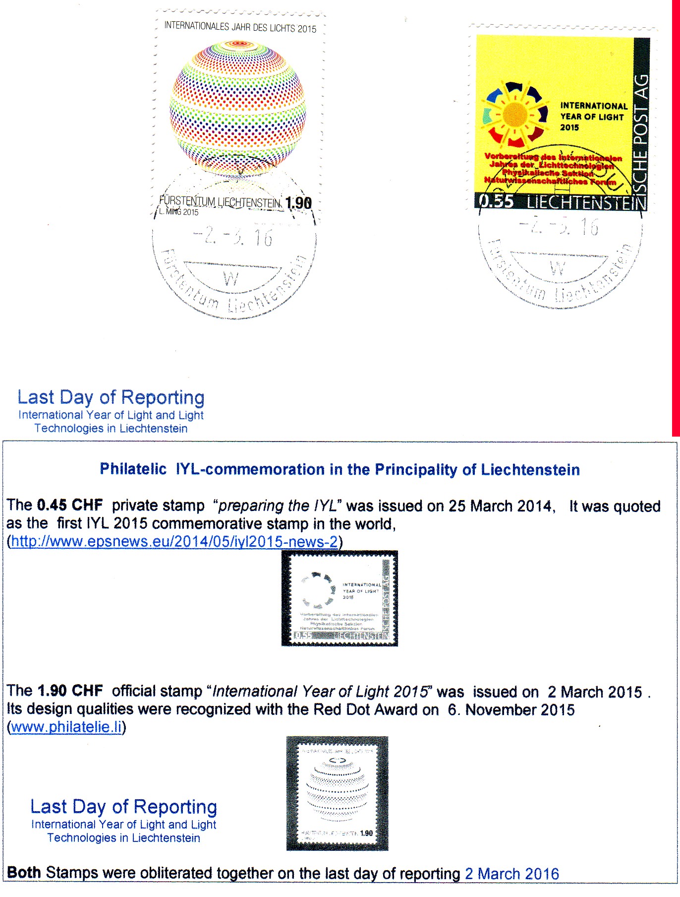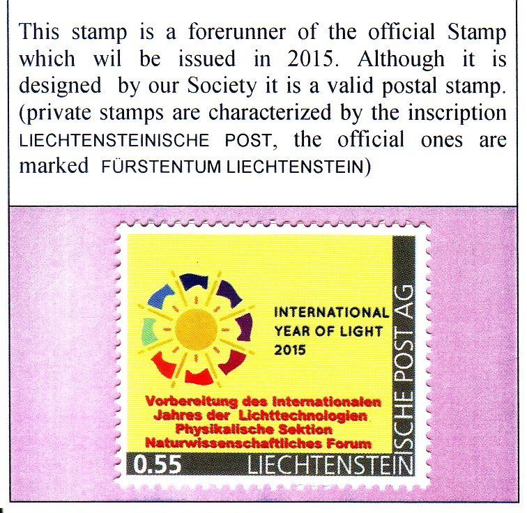 Jedes Jahr wird eine Briefmarke mit einem wissenschaftlichem oder technischem Thema ausgewählt und an der Delgiertenverammlung der Europäischen Physikalischen Gesellschaft, sowie an sonstigen internationalen Kongressen als kleines Andenken aus Liechtenstein mitgebracht (bei Bedarf mit Kurzbeschreibung in Englisch).